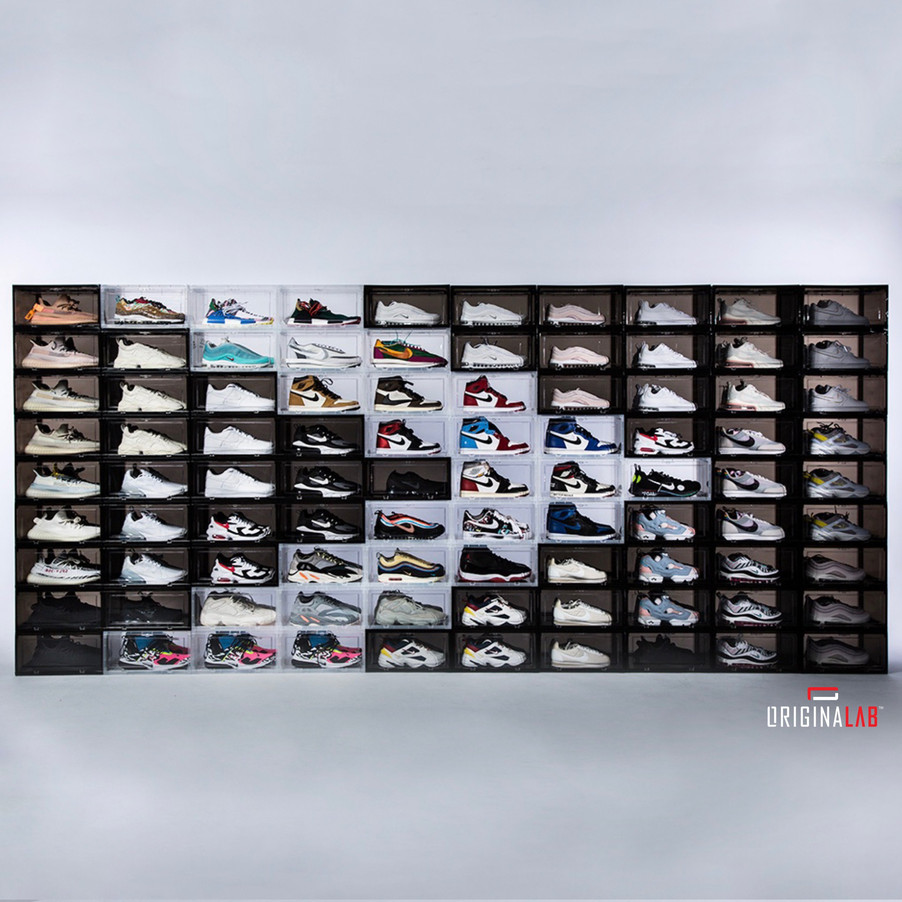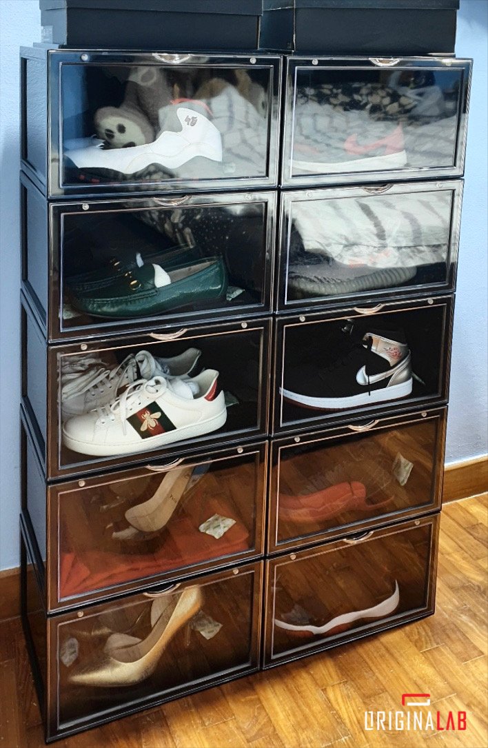 ORIGINALAB Premium Shoe Boxes keep your shoes/sneakers organized and neat. Gives you a good overall view of your shoe collection, making it simple to grab them at a glance.