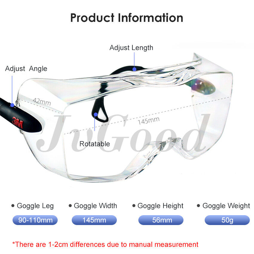 JvGood Protective Goggles Safety Goggle Anti-splash Dust-Proof Wind-Proof Work Lab Eyewear Eye Protection Industrial Research Safety Glasses Fully Enclosed Lens for Outdoor Indoor Use
