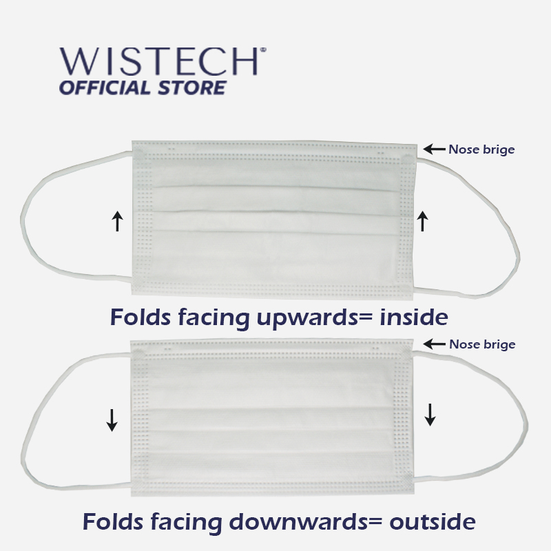 Coloured side with Folds facing downwards of Surgical Mask should face outwards