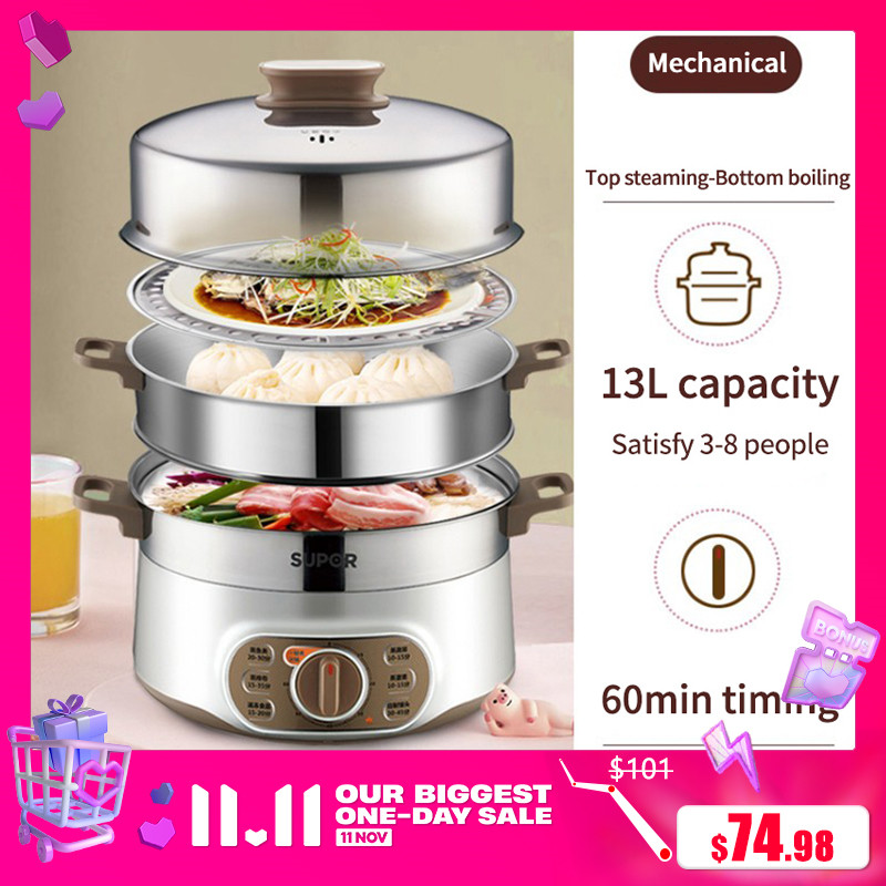 Supor Electric Steamer 13L Household Multi-function Three-layer Large-capacity Automatic Power-off Steamer Small 304 Stainless Steel