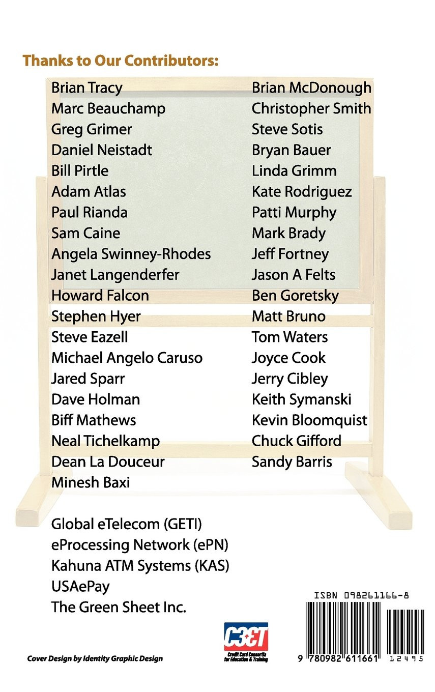 "It's the first book written in collaboration with credit card processing and business experts from across the country," says Bill Pirtle, C3ET president and guest "Street Smarts" columnist for the Green Sheet from April of 2011 through March of 2012. "The book is expected to standardize training for sales agents and ISOs (independent sales organizations). It will fill a niche that has been lacking." In his Foreword, Daniel Neistadt says "Credit Card Processing for Sales Agents and the accompanying study guide will help the sales agents and ISOs to generate more profit while helping them better understand the industry. These are exciting times." The book's contributors represent the entire breadth of the industry, from CEOs (two of whom are founders of what is now known as the Electronic Transactions Association [ETA]), sales trainers, and executives to value-added resellers, attorneys, media experts, and business consultants. Expertise on sales topics is contributed by New York Times best-selling author, Brian Tracy, and on cold calling by international expert, Greg Grimer. A total of 39 authors and 44 chapters in all bring comprehensive training to agents and ISOs alike. Over 600 information-packed pages deliver industry expertise on topics such as sales techniques, POS systems, terminals, contracts, ethics, and more. The sections are Introduction; MLS Development; Finding Prospects, Selling Process; Terminals & Gateways; Value-Added Products; and ISO Topics. Chapters include Basic Concepts; Legal Strategy for the MLS; Information is Power; Ethics & Value; Navigating Interchange; Associations, Prospecting; Phone Sales; Check 21 & ACH Processing, and Gift Cards.